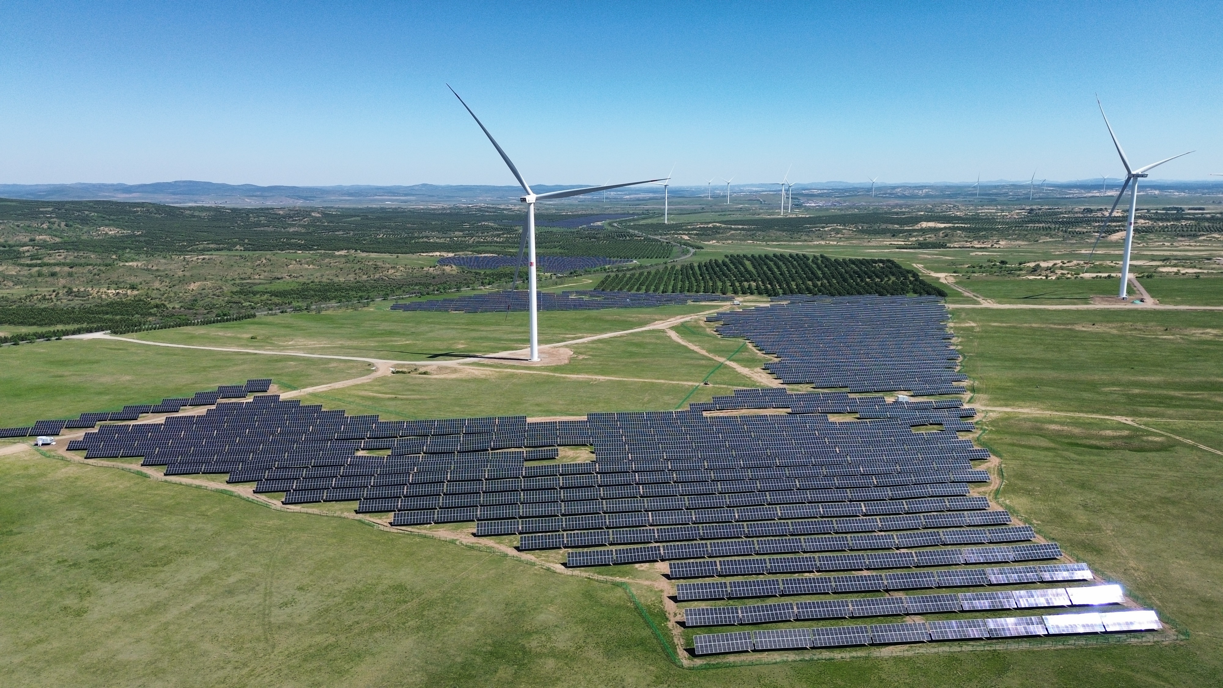 新能源分公司先后建成風(fēng)電及光伏項(xiàng)目224個(gè),總?cè)萘?1948MW,其中建成光伏項(xiàng)目33個(gè),容量1566MW;建成風(fēng)機(jī)機(jī)組4152臺(tái)。在建新能源項(xiàng)目25個(gè),其中EPC風(fēng)電項(xiàng)目2個(gè),容量100MW,EPC光伏項(xiàng)目7個(gè),容量457MW。送變電工程公司在建光伏項(xiàng)目4個(gè),容量420MW;在建風(fēng)電項(xiàng)目2個(gè),容量74.5MW,風(fēng)機(jī)機(jī)組22臺(tái)。